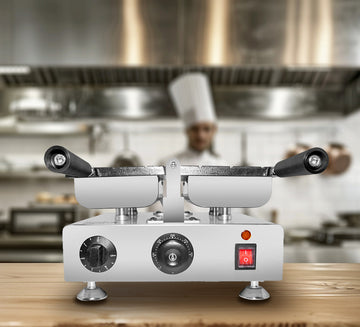 Three waffles on a stick with a lovely heart-shaped design will be ready in a few minutes. This waffle stick maker with a power consumption of 1.56kW is perfect for small cafes, street food points, shopping malls, etc.
