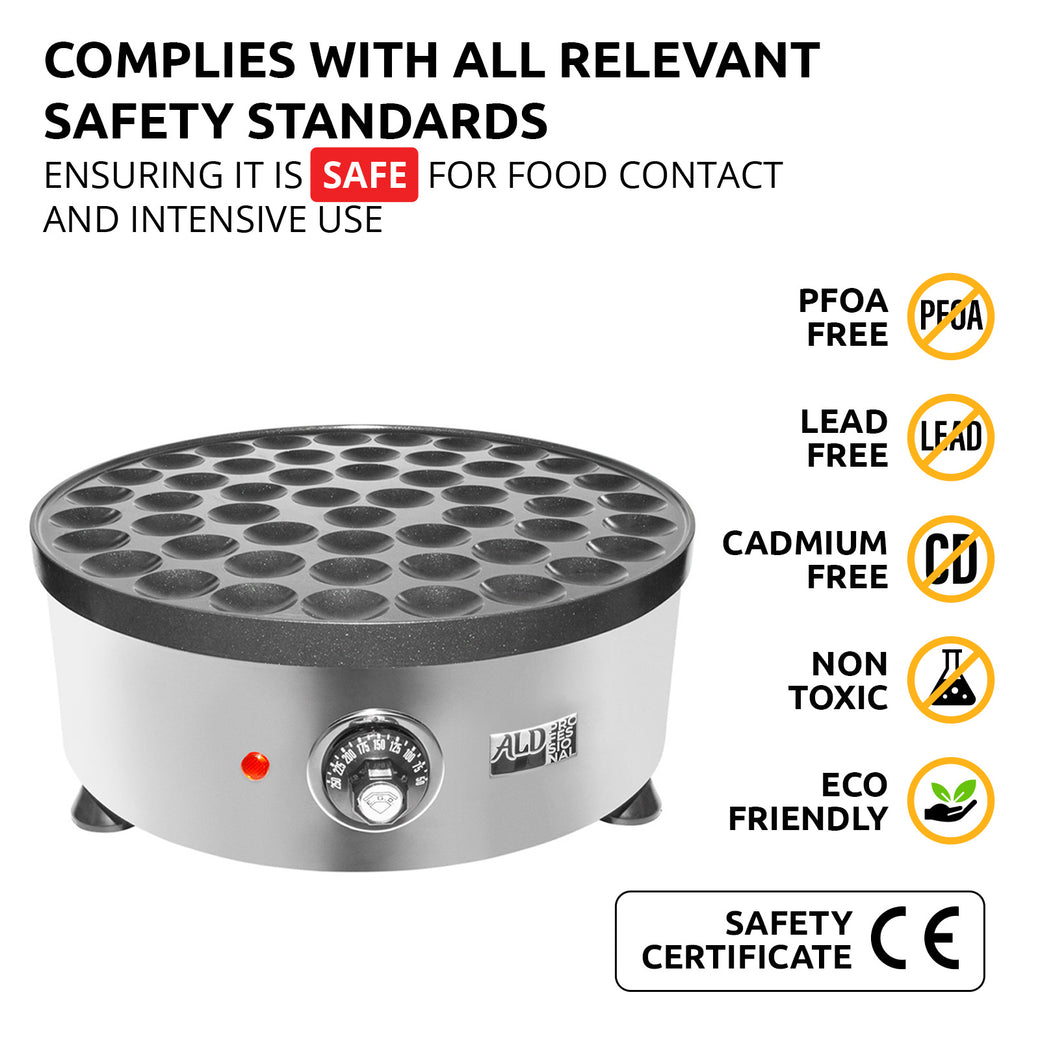 • Advanced heating technology ensures an even spread of heat across the poffertjes iron, effectively eliminating hotspots. This results in uniformly golden-brown poffertjes, each with a flawless texture and appearance.