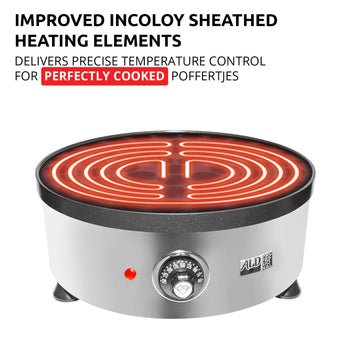 • The enhancement of this appliance with state-of-the-art thermostat and heating elements elevates poffertjes making to a new level of excellence: