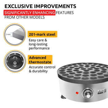 • The upgraded thermostat provides meticulous temperature control, vital for achieving perfectly cooked poffertjes with each use.