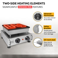 Beautiful design of this poffertjes maker perfectly fits for an open kitchen of any café or restaurant. Stainless steel construction with nonstick surface makes this machine easy to operate, be always kept clean and serve longer. The baking molds are made of high grade cast iron with high thermal conductivity. Regulate temperature with adjustable control knob to bake delicious and soft big pancakes!