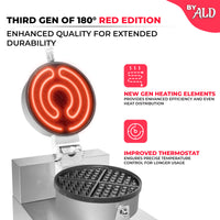 Made with corrosion-resistant stainless steel and a vibrant red front panel, this waffle maker offers both long-lasting performance and an attractive look for any kitchen.