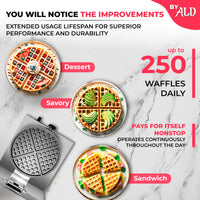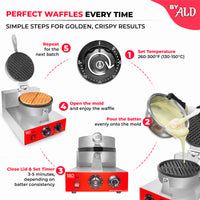 Compact in size yet powerful enough for commercial use, this waffle maker fits seamlessly in cafes, food trucks, and even small kitchens.