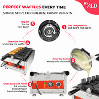 Crafted from durable stainless steel with nonstick-coated molds, this machine offers long-lasting performance and easy cleaning. Its energy-efficient design ensures consistent results without excessive energy consumption, making it ideal for extended use in busy environments.