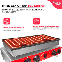 Made with high-quality stainless steel and a bold red front panel, this machine combines long-lasting performance with an eye-catching professional look.
