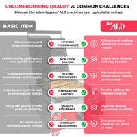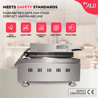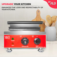 Stainless steel construction ensures durability, while the built-in residual tray collects excess batter to keep your workspace clean and tidy.