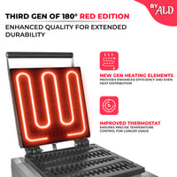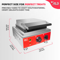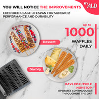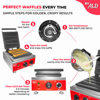 High-grade aluminum plates with a nonstick coating allow easy waffle release and prevent dough from sticking, ensuring long-lasting usage.