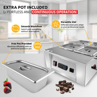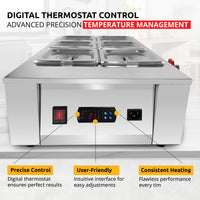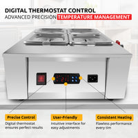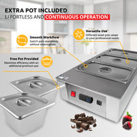 AP-330 Chocolate Melter | Electric Chocolate Warmer | Commercial Stainless Steel Fondue Pot | 4 Pots 22 lb | 110V