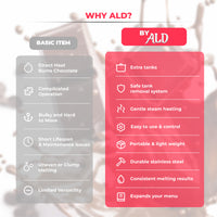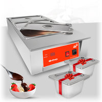 This digital electric pot melts chocolate with water-heating mechanism. This powerful machine with 1 tank allows melting up to 18 lb (8 kg) of various sweet ingredients, which makes it convenient whether you use this machine for your family dinner or bakery/cake/chocolate business.