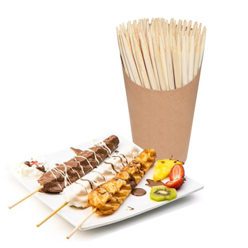 Ces brochettes en bambou peuvent être utilisées pour une grande variété d'aliments. Elles sont parfaites pour les pommes d'amour et au caramel, les barbecues de viandes et de légumes, les corn dogs ou les gaufres en forme de sapin, et bien plus encore !