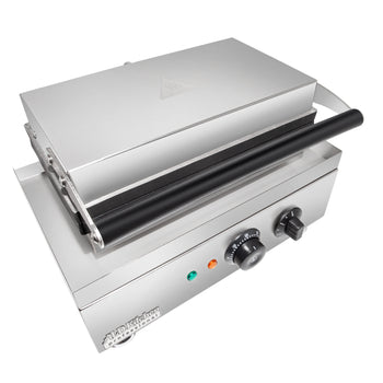 この機械はステンレス鋼製で、ノンスティック加工が施された鋳造アルミニウムプレートが使用されています。ステンレス鋼は耐腐食性と耐久性に優れているため、厨房機器に広く使用されています。