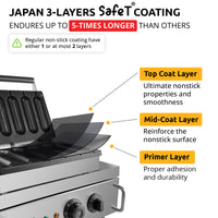 このプロのワッフルアイアンを使用すると、5分以内に6つのホットドッグワッフルを作ることができます。機械のボディはステンレス鋼であり、ベーキングプレートは焦げ付き防止のコーティングを備えた焦げ付き防止です。タイマーと調整可能な熱制御により、簡単な使用とスムーズな操作が保証されます。