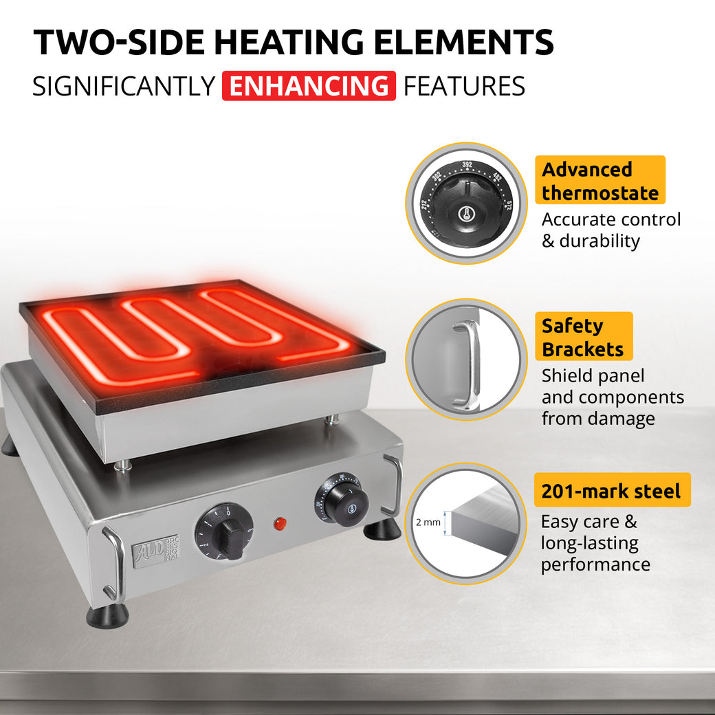 heat均等:非常に導電性鋳鉄プレートは熱を均等に広げ、ポフファーチェが燃えるのを防ぎます