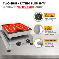 Beautiful design of this poffertjes maker perfectly fits for an open kitchen of any café or restaurant. Stainless steel construction with nonstick surface makes this machine easy to operate, be always kept clean and serve longer. The baking molds are made of high grade cast iron with high thermal conductivity. Regulate temperature with adjustable control knob to bake delicious and soft haert-shaped mini pancakes!