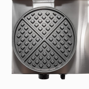 Take into account this waffle maker if you are looking for a machine with increased capacity. The appliance is designed to make two round-shaped waffles simultaneously, allowing you to serve more in a shorter period. Safe and robust stainless-steel construction assures the machine to work long.