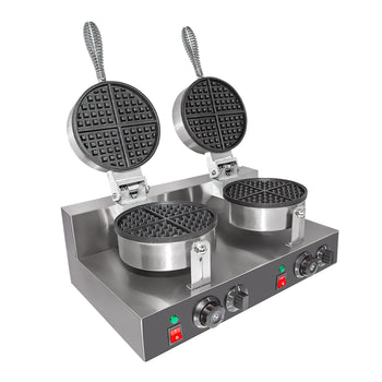 AP-601_2 Double Waffle Maker | Round-Shaped Belgium Waffles | Stainless Steel | Nonstick Coating | 110V